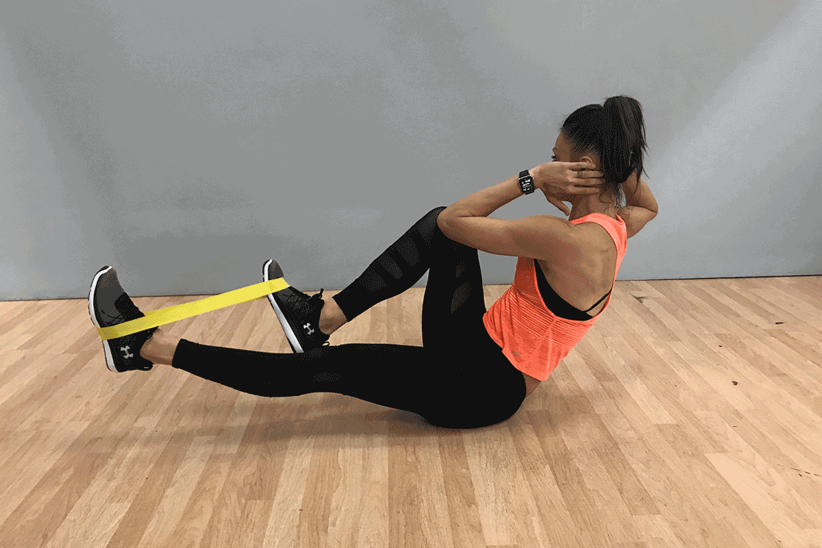 - Ülj le a földre és tedd a lábfejed közepére a gumiszalag hurkot