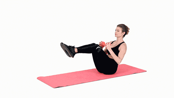 - Ülj le a földre és vegyél a kezedbe egy súlyzót.