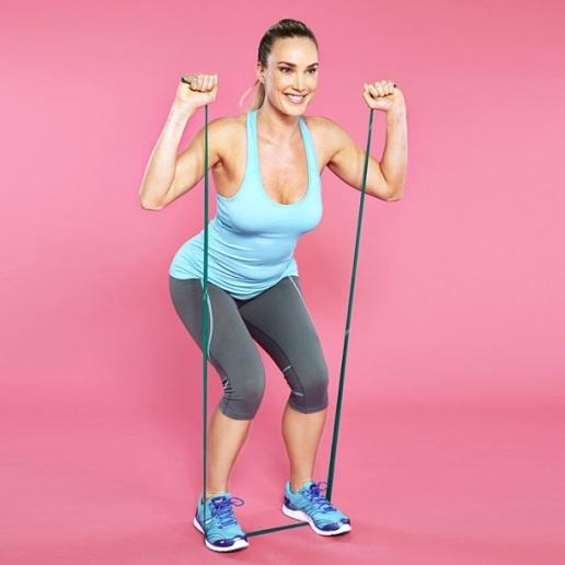 - Fogd meg a szalag végeit és emeld a kezed a vállad magasságába. Fontos, hogy a szalag enyhén feszüljön!