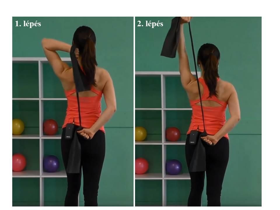 - Húzd a könyököd felfelé egészen addig, amíg a lapockád össze nem ér és a könyököd be nem hajlik teljesen.