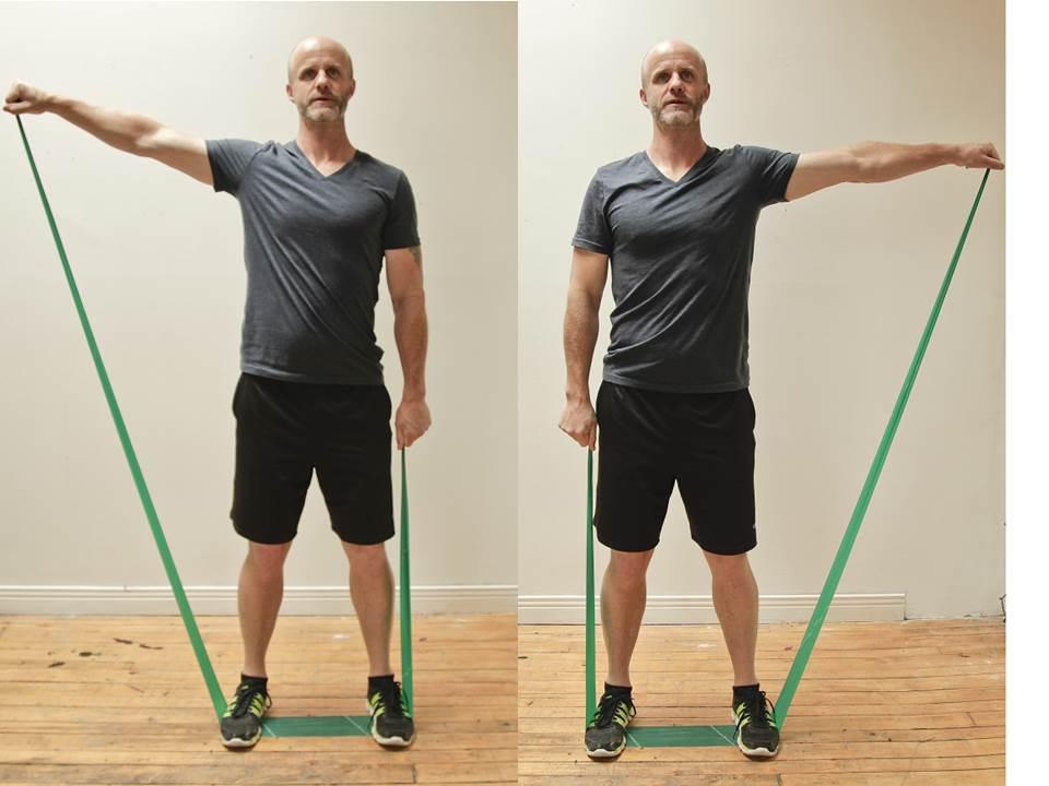 - Ezután egyenes könyökkel emeld a jobb kezed oldalra egészen addig, amíg a karod el nem éri a vízszintes állapotot.