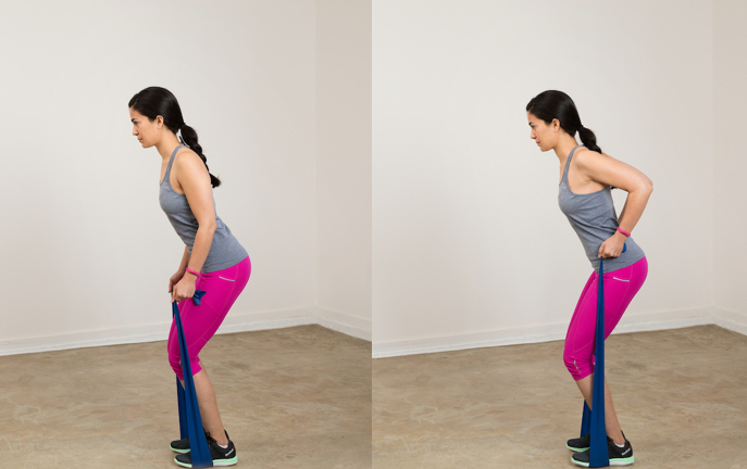 - Fogd meg a TheraBand gumiszalagot a hátad mögött úgy, ahogy azt a képen is látod.