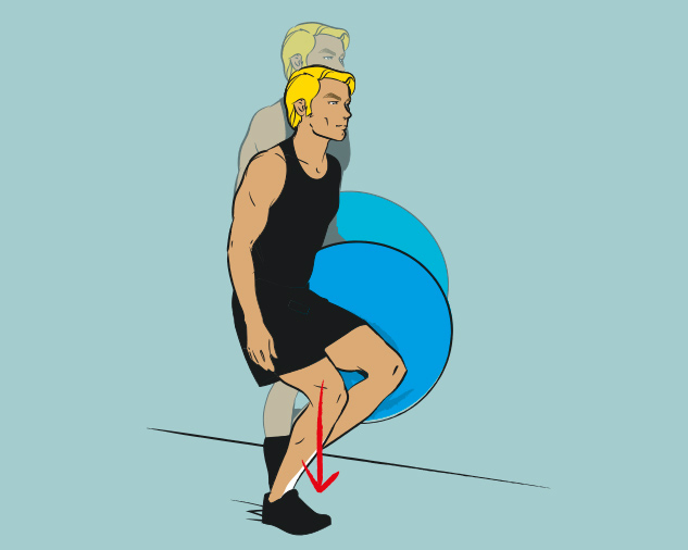 Ha már aktivizáltuk az oldalsó izmokat, amelyek futás során sajnos eléggé el vannak hanyagolva, tovább fokozhatjuk izomerejüket az alábbi gyakorlattal. Ismét egy szabad falfelületre és egy nagylabdára van szükségünk. A gyakorlat során oldalt állunk, a falhoz közelebbi lábunkat elemeljük a talajtól, és enyhén távolítva a másik lábunktól megtartjuk vele a labdát a falhoz nyomva. A másik lábunkkal kis guggolást végzünk. Fontos, nem ráfekszünk a labdára, a törzs feszes és erős, a fal felőli lábunkat pedig folyamatosan nyomjuk a labdába ezzel aktiválva az oldalsó lánc izmait.