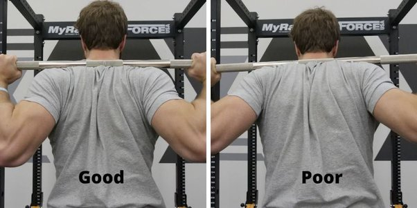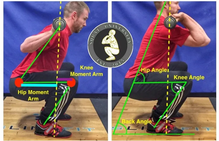 A fenti képen a jó és rossz kivitelezés látható a guggolás során. Az előre helyezett fej helyzet nyaki panaszokat okozhat.