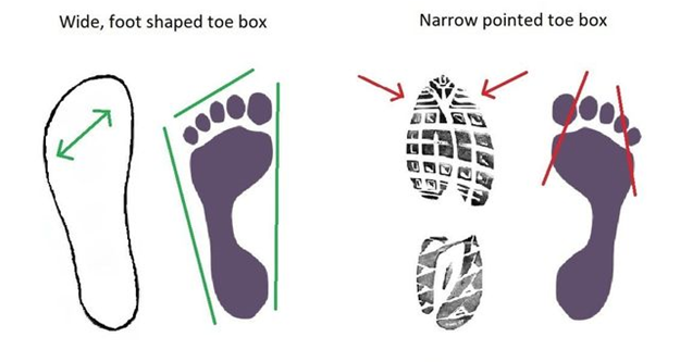 A láb panaszok fő oka a nem megfelelő cipő kiválasztása. A lábujjak területén széles cipők a legoptimálisabbak, hiszen ilyenkor ki tudjuk használni a lábujjak elterülésével nyert többlet felületet.