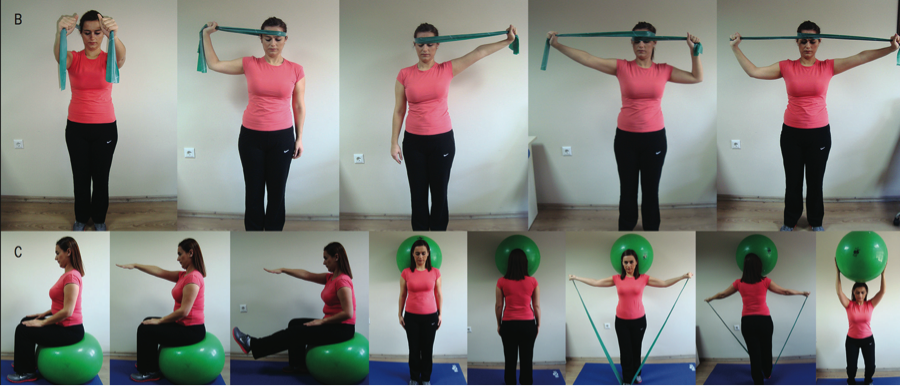 Nyak stabilizálása elasztikus szalaggal és fitnesz labdával.
