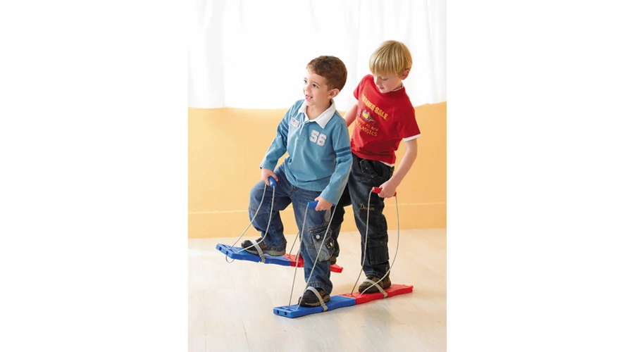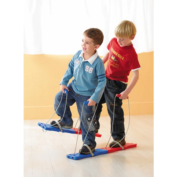 Ez a készlet ideális szabadtéri játékhoz, ahol a gyerekek együttműködést, egyensúlyt és koordinációt gyakorolhatnak. A készlet 2 pár futólécet tartalmaz, mindegyik 39,5 × 12,5 × 2,5 cm méretű, csúszásmentes felülettel és állítható lábpántokkal rendelkezik.