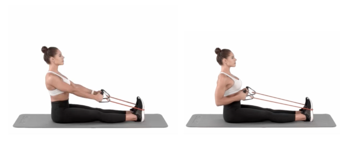 - Fogd meg a gumikötél két végét úgy, hogy a tenyereid egymás felé nézzenek és a kezeid szorosan a tested mellett legyenek kinyújtva. Ez lesz a kiinduló pozíció.