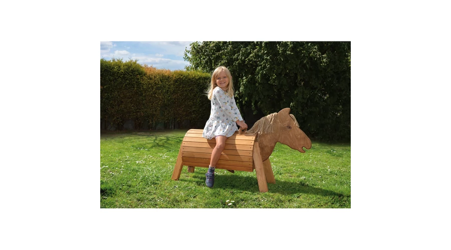 Kültéri fa ló, kifejezetten gyerekek számára, stabil, biztonságos és strapabíró kialakítással. | |