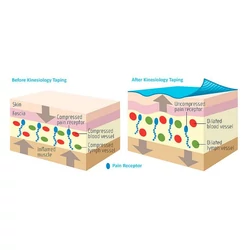 Felhelyezése során elmozdítja a szöveteket a fájdalmas területek fölül, vagy korrigálja azok pozícióját. Hatására javul az adott terület vér- és nyirokkeringése. Támogatja az izomaktivitást is, így csökkentve a fájdalmat és a gyulladást.