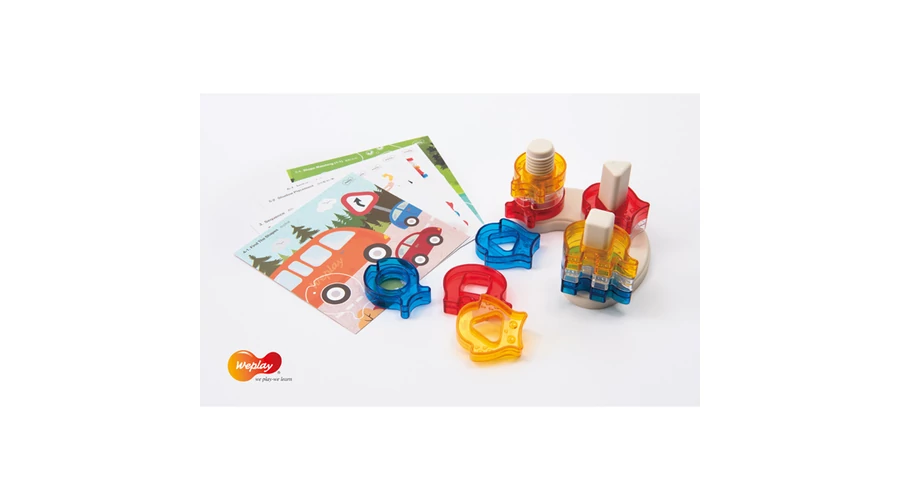 Egy különleges, átlátszó építőjáték, amelyben a gyermekek 3 különböző formájú (elefánt, hal, bagoly), színes elemmel ismerkedhetnek meg. A formák közepén geometriai alakzatok találhatók, amelyeket a gyerekek a stabil alap oszlopaira helyezhetnek vagy rátekerhetnek. A játék során fejlődik a kéz-szem koordináció, a finommotorika és az ügyesség. A színes elemek révén a gyerekek megtanulják a piros, sárga és kék alapszíneket, sőt kísérletezhetnek új árnyalatok létrehozásával a színek átfedésén keresztül. A lekerekített alap könnyen megfogható, így ideális a kisgyermekek számára. A játékhoz 6 kétoldalas feladatkártya is tartozik, amelyek további inspirációt nyújtanak a szórakoztató tanuláshoz.