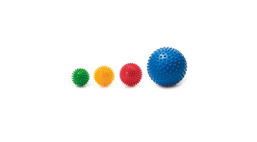 A 15 cm-es masszázslabda nagy tüskékkel rendelkezik, amelyek játékosan serkentik a tapintás érzékét és a testérzékelést. A labda levegővel töltött, így könnyen nyomkodható, ruganyos és biztonságos a gyerekek számára.