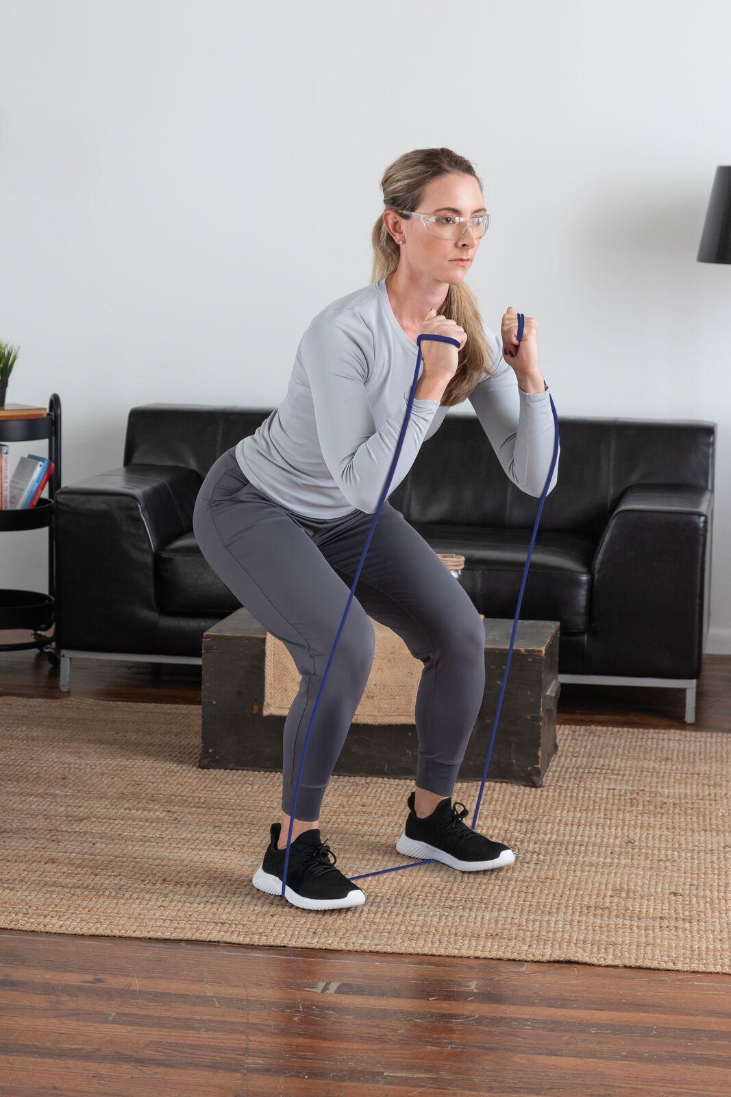 A színek szerint kódolt, hat progresszív ellenállási szinttel rendelkező gumiszalag a klasszikus latex változattal megegyező teljesítményt nyújt, de latexallergia kockázata nélkül.