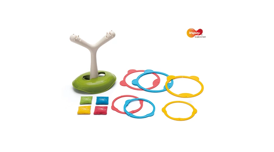 A Twiggly célbadobó egy izgalmas és sokoldalú dobójáték, amely a legkisebbeknek is rengeteg örömet nyújt. A játék közben a gyerekek gyakorolják a célbadobást állatos karikákkal és babzsákokkal, miközben fejlődik a szem-kéz koordinációjuk, a kéz csuklójának rugalmassága, valamint a figyelmük és koncentrációjuk. Az önálló összeszerelés ösztönzi a kreativitást, a dobás gyakorlása pedig növeli a kitartást és a frusztrációtűrést. A készletben minden megtalálható a változatos játékhoz: egy stabil alap, Y-alakú ág, 6 állatos gyűrű (3 medve, 3 majom) és 4 színes babzsák. Beltéren és kültéren is kiváló szórakozást nyújt.