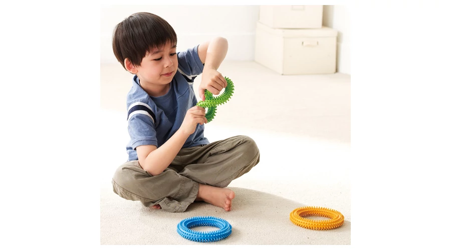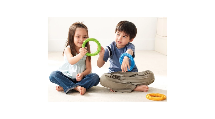• Jellemzők: háromféle erősség a fokozatos fejlesztéshez, tüskés felület a szenzoros stimulációért, biztonságos és tartós anyag