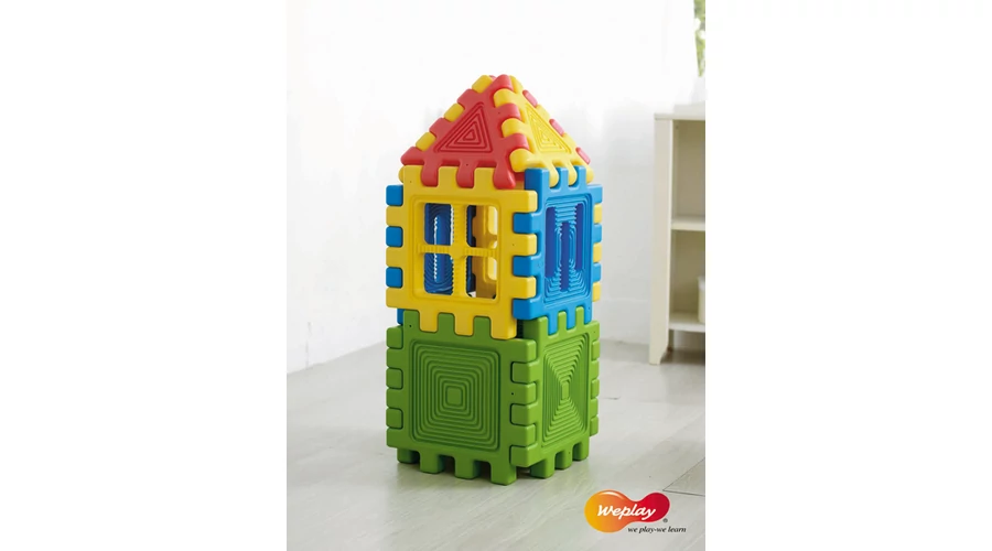 Az elemek biztonságosan egymásra helyezhetők, a helytakarékos tárolás érdekében egymásba illeszthetők és rögzíthetők. Ideális a finommotorika, a térbeli érzék és a képzelőerő fejlesztésére.