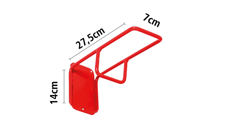 A tartó strapabíró acélból készült, amely hosszú élettartamot és nagyfokú terhelhetőséget garantál. A 27,5 × 7 × 14 cm méretű, piros színű tartó kis súlya ellenére rendkívül masszív, így ideális választás mind otthoni, mind intézményi – például óvodai vagy iskolai – felhasználásra. A gyermekek számára használt járművek tárolása így mindig rendezett, gyors és egyszerű.