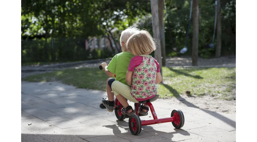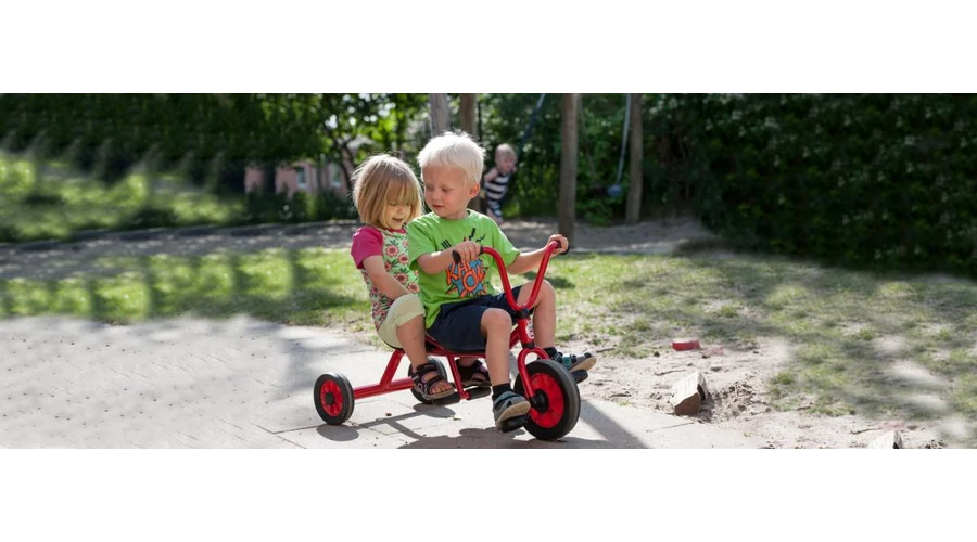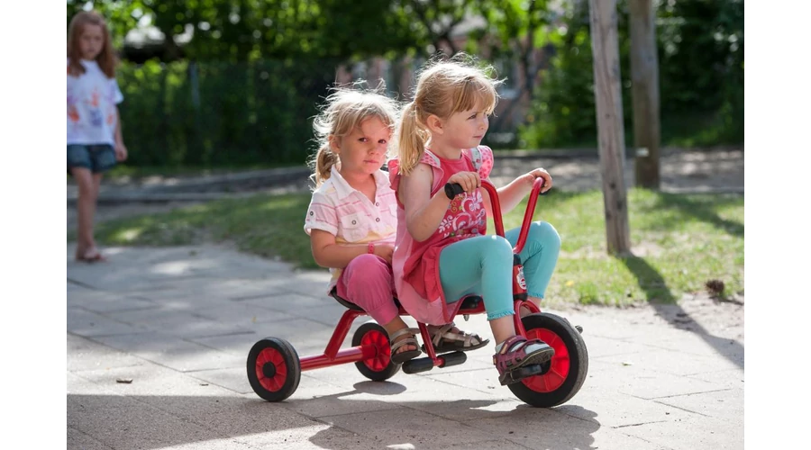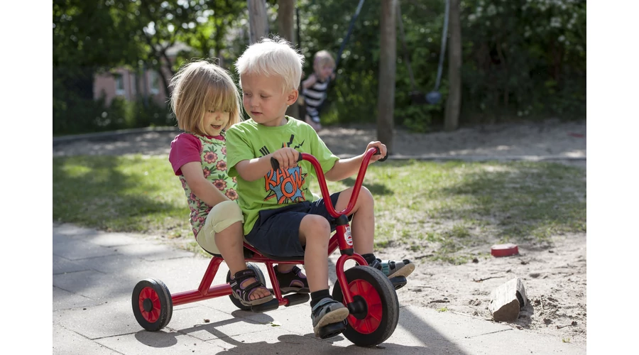 A MINI VIKING Dupla tricikli kifejezetten úgy lett tervezve, hogy két gyermek egyszerre élvezhesse a közös játék és felfedezés örömét. Ez a stabil és biztonságos jármű lehetővé teszi, hogy a kicsik együtt induljanak kalandra, legyen szó arról, hogy egyikük elviszi a másikat a homokozóból, vagy közösen kitalált történeteket játszanak el. A dupla tricikli nemcsak szórakoztató, hanem fejleszti a gyerekek motorikus képességeit, egyensúlyát és koordinációját, miközben a szerepjátékok révén a szociális készségek is erősödnek.